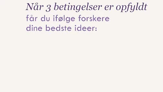 Du skal slappe af. Når sindet er i afslappet tilstand, er der større sandsynlighed for, at du vender opmærksomheden indad. Det gør din hjerne i stand til at skabe nye, indsigtsfulde forbindelser.