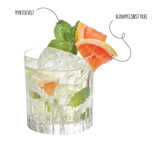 Tilsæt isterninger og friske ingredienser, indtil kanden er godt fyldt.