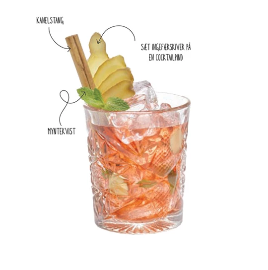 Tilsæt isterninger og friske ingridienser, indtil kanden er godt fyldt.