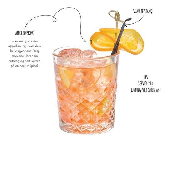 Tilsæt isterninger og friske ingredienser, indtil kanden er godt fyldt.