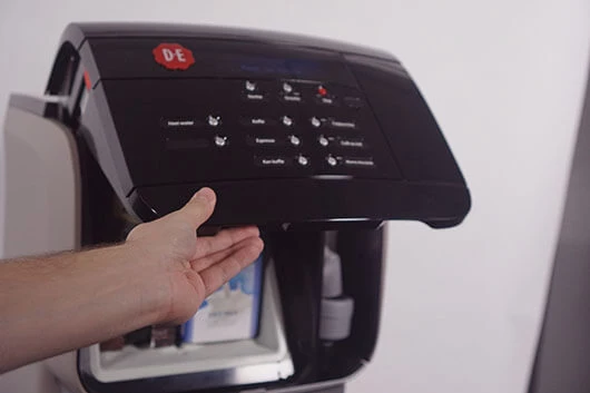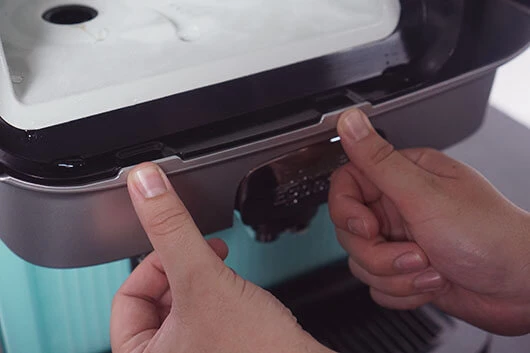 Schuif de mengbak terug in de koffiemachine. Als de mengbak goed is geplaatst, hoor je een een dubbele piep.