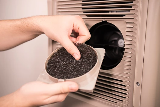 Rinse the filter under the tap and dry it well. Dry the filter with a clean, dry cloth. A paper towel can leave paper residue that is hard to remove. If there is dust on the grid too, you can do the same with the grid.
