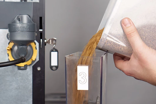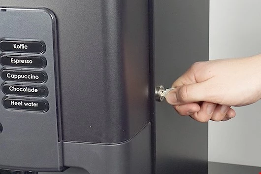 Med den medfølgende nøgle kan du åbne døren fra højre side. Dette frigør låget og ingredienserne.