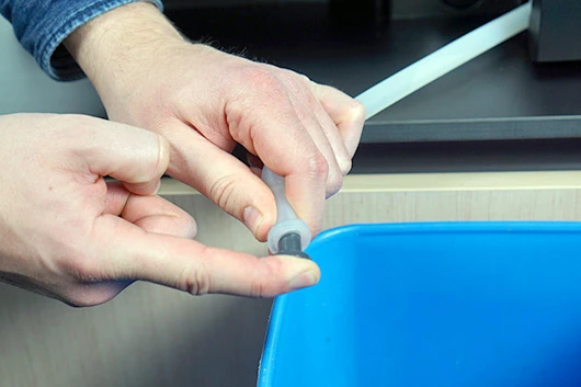 Træk (forsigtigt) afløbsslangen ud af din Promesso.