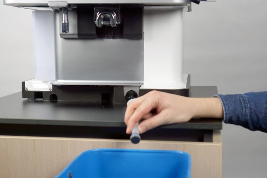 Så snart 'empty flush bin' (eller 'empty the collection bin') vises på displayet, kan du fjerne og tømme beholderen.