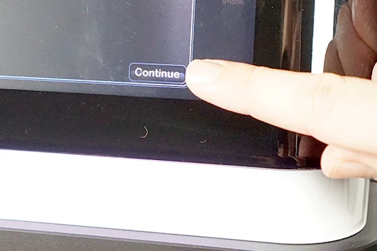 På displayet på din Promesso skal du trykke på 'continue' (eller 'continue').