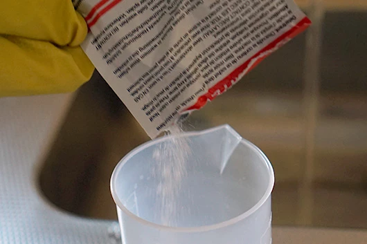 Opløs 100 gram Renegite i 500 ml lunkent vand i målebægeret. Rør godt rundt, så Renegiten opløses helt.