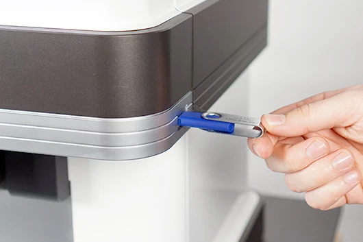 Tryk på 'continue' (eller 'continue') på skærmen. Din Promesso fylder nu kogeren og varmer op. Når den rigtige temperatur er nået, skylles udgangene. Det drejer sig om højst 3 liter vand.