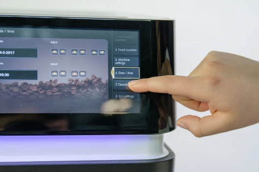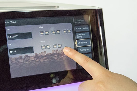 Der er en USB-port på højre side af din kaffemaskine. Placer USB-nøglen til din Promesso der.