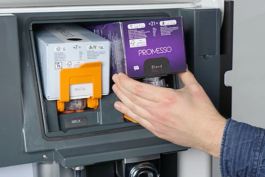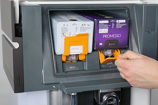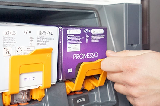 Din Promesso vil indikere i tide, hvornår du har behov for at skifte ingredienspakkerne ud. Det samme gælder for mælk og kaffe.
