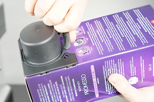 Løft emballagen op, og fjern den tomme emballage fra din Promesso.