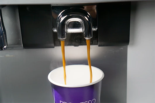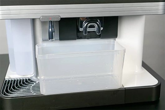 Hvis du lægger en ny ingrediens, skal du altid skylle kaffemaskinen. Anbring den medfølgende beholder under dispenseringspunktet.