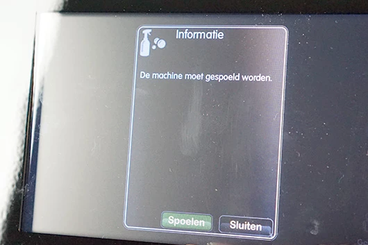 Tryk på symbolet for at starte skylningen. Tryk derefter på start for at skylle rørene. Dette tager cirka 2 minutter. Bemærk: rør ikke ved vandet, dette er meget varmt!