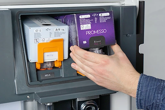 Rens med en fugtig klud på ydersiden af din Promesso. Din Promesso er nu klar til brug. Lav hurtigt din yndlings kaffekreation!